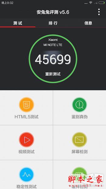 安兔兔性能测试是最常用的测试软件,里面涵盖了内存和闪存、CPU、图形、SD卡读取/写入等测试项目,并给出一个综合性分数。最后得出的分数,基本上能比较准确的表示你的手机属于那一个性能阶梯。小米Note的得分相比于小米4来说似乎还提升了一些,最终为45699分。