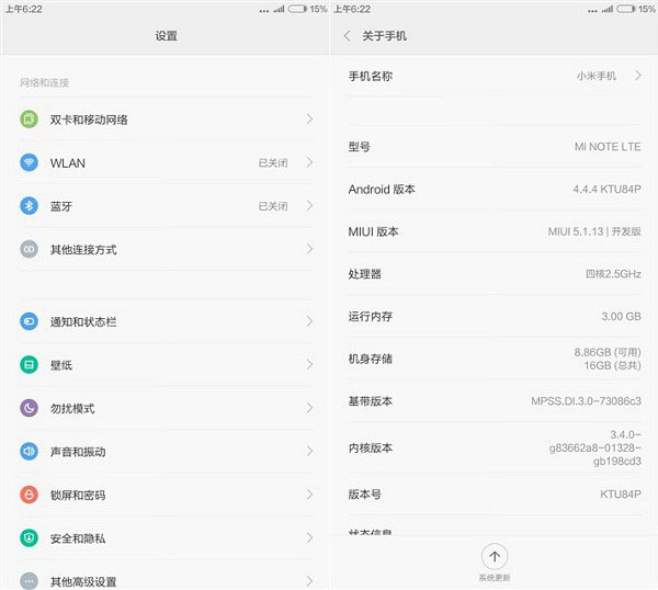 | 系统版本 | MIUI 6(基于Android OS 4.4) | MIUI 6(基于Android OS 4.4) |