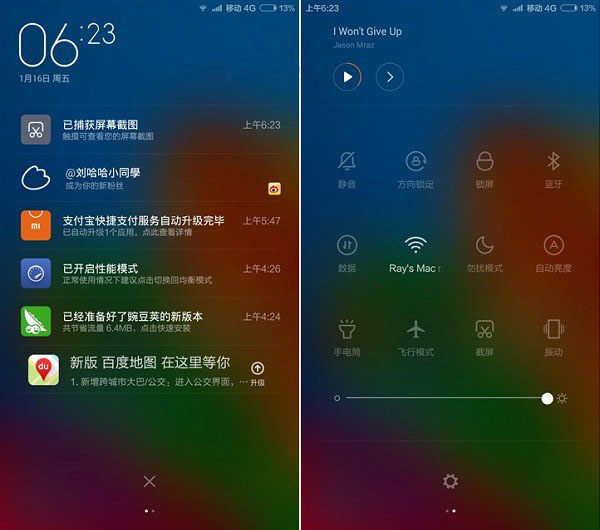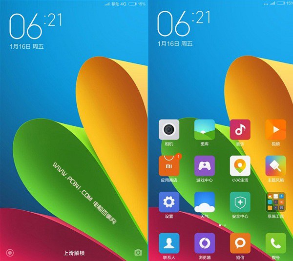 图为小米Note锁屏与桌面界面