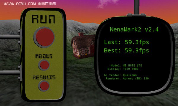 最后简单测试一下小米Note图形性能。NenaMark2是一款用于Android设备的硬件加速基准测试程序,通过演示一款实时渲染的画面来对手机的图形能力进行测试,包括反射、动态阴影、曲面参数、复杂光线模式等内容,需要Android 2.0以上系统和OpenGL ES 2.0支持,图形性能跑分测试成绩,如下。