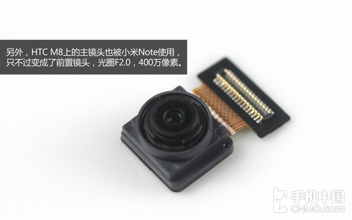 另外,HTC M8上的主镜头也被小米Note使用,只不过变成了前置镜头,光圈F2.0,400万像素。