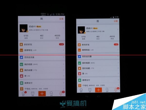 有着高频的四核处理器以及高达25.6GB/s的恐怖带宽支持,Droid Turbo在2K分辨率下流畅性又如何呢?我们使用开发者选项中自带的“GPU呈现模式分析”来考验一下它(测试过程中开启ART模式)。在新浪微博中,滑动的时候,可以看到黄线和红线都要大幅低于绿色基准线(低于绿线即代表画面帧数超过60)。