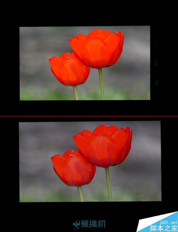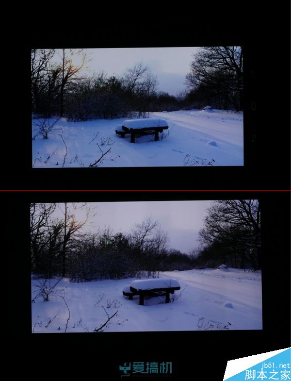 红色系的对比,Droid Turbo的红色显得格外鲜艳,而Galaxy Note 4相比之下色调要暗淡一些(上Droid Turbo,下Note 4)。