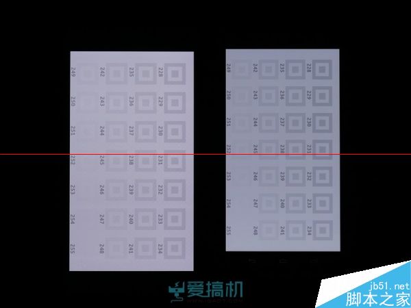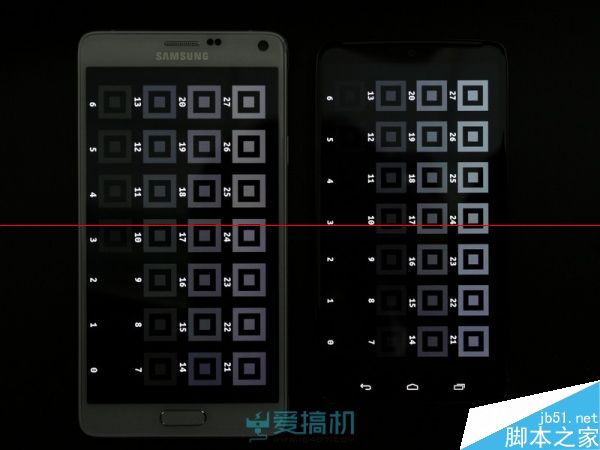 黑色对比度,Galaxy Note 4比Droid Turbo要出色不少,能清晰看到3,而Droid Turbo到了5已经很勉强了。