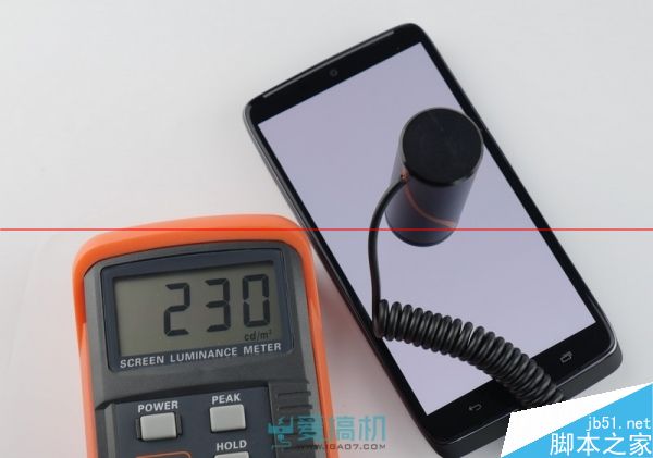 最后我们再来看看AMOLED屏幕的软肋——亮度。Droid Turbo在正常情况下手动调节最高亮度,屏幕亮度仅有230cd/㎡,和其他旗舰产品差距非常大。