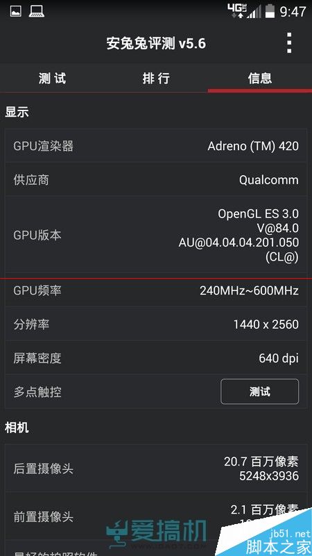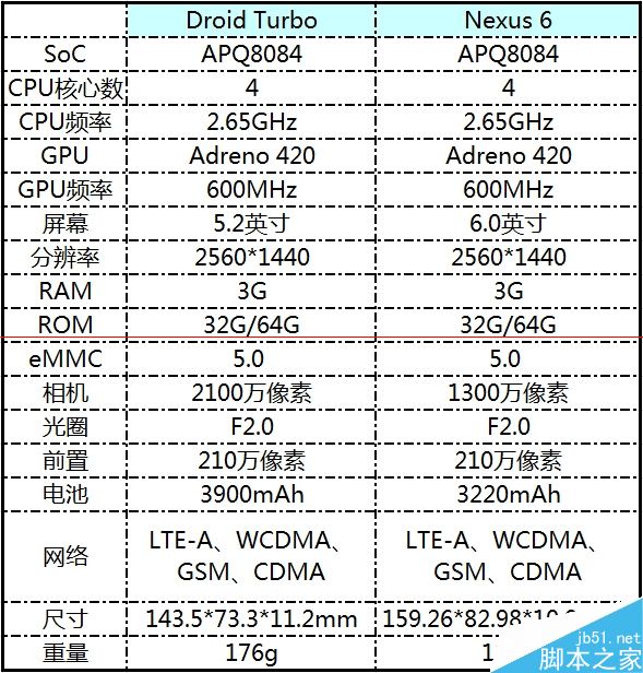 Droid Turbo的配置的强大之处,在于它使用了2K屏幕、骁龙805、3G Ram、2100万像素等配置,它也是为数不多的使用骁龙805的手机(另外几台是Galaxy S5 Broadband LTE-A、G3 Cat.6、Galaxy Note 4以及Nexus 6)。我们也对它的性能进行相关测试。