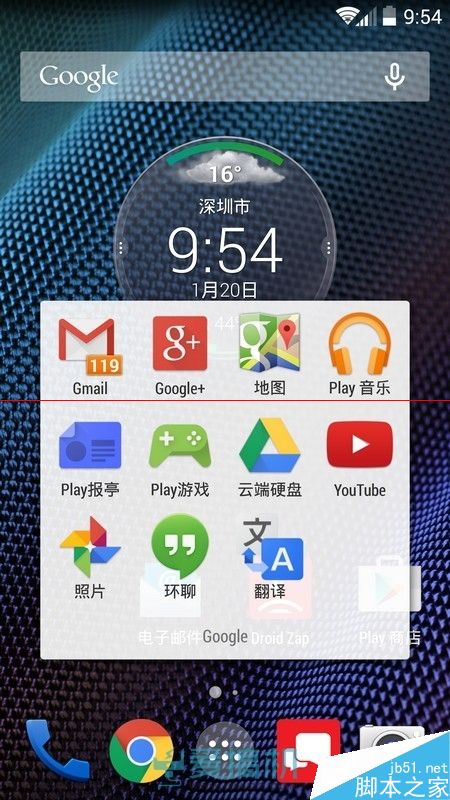 启动器下的文件夹显示,由于Droid Turbo使用的依然是Android 4.4.4,所以文件夹并没有全屏显示。