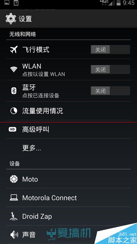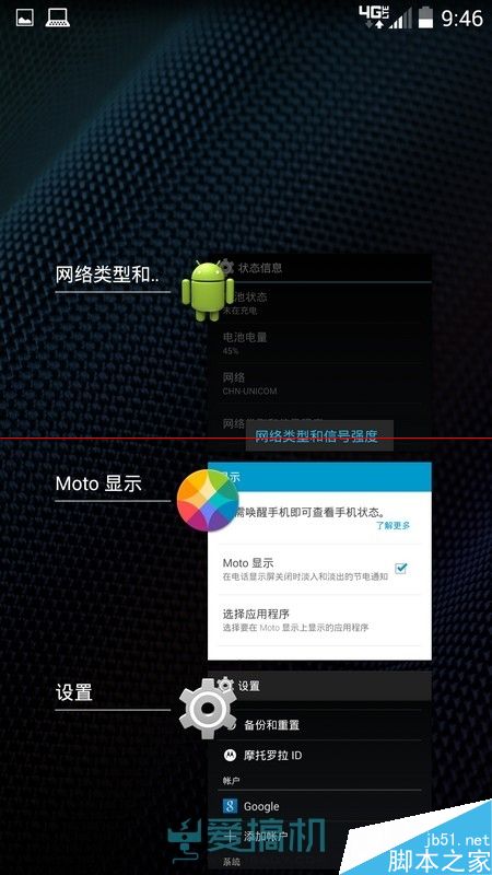 系统设置菜单也是和原生Android没有任何区别的,不过增加了一些摩托罗拉定制的设置选项。