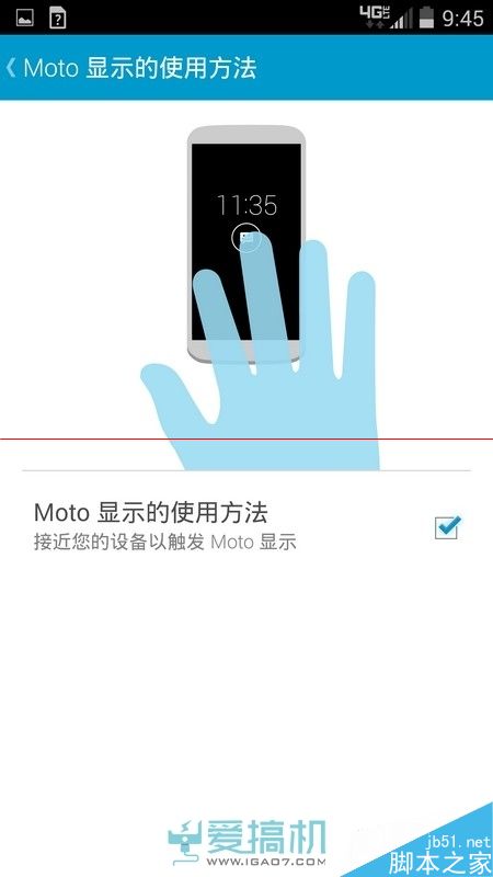 打开“操作”,可以选择Moto显示的功能,锁屏状态下当手接近手机,即可查看时间和通知(具体演示可以点击文章开头的视频)。