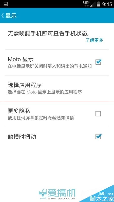 设置里面有一个名为“MOTO”的选项,点击以后可以对Droid Turbo的一些体感和辅助功能进行设置。