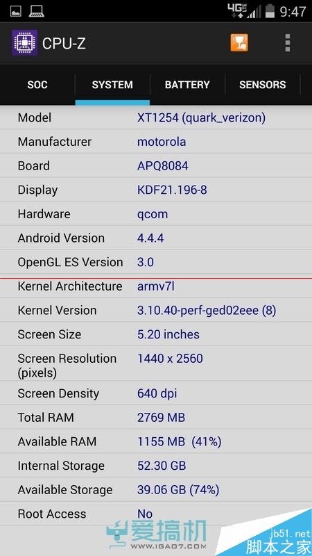 Verizon定制版Droid Turbo型号是XT1254,我们测试的是64G Rom的版本,可用容量有52.3G。