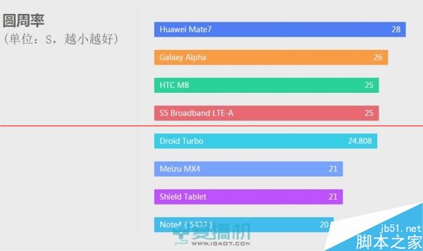 以上是Droid Turbo和一些热门的手机圆周率的成绩对比。
