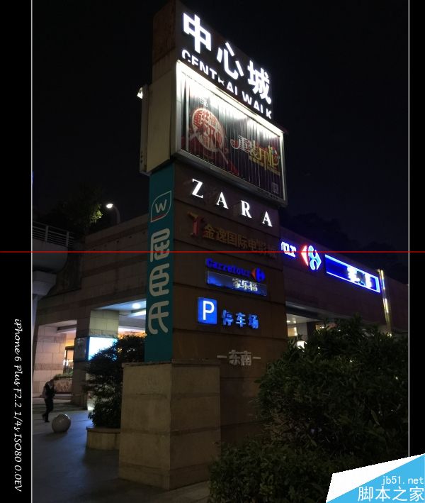 夜景表现,iPhone 6 Plus终于扳回一局,在画面细节和眩光控制方面都要比Droid Turbo更出色。依靠光学防抖,iPhone 6 Plus的ISO压在80,快门速度长达1/4秒,但是手持依然保持画面没有“糊”。而Droid Turbo有着更高的画面亮度,这是由于它把ISO调到了1000,快门速度在1/15秒,两者在夜景方面的调教还是有比较大的区别的。