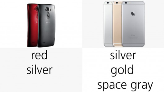 G Flex 2提供两种颜色选择,苹果提供了三种。