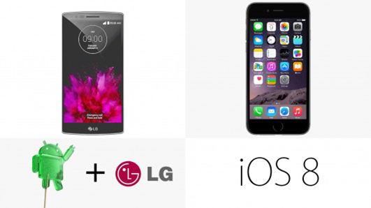 G Flex 2搭载安卓5.0 Lollipop(其上运行LG UI),iPhone 6 Plus搭载iOS 8。