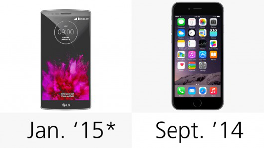 G Flex 2在韩国于1月15日开售,iPhone 6 Plus在美国于去年9月14日推出。
