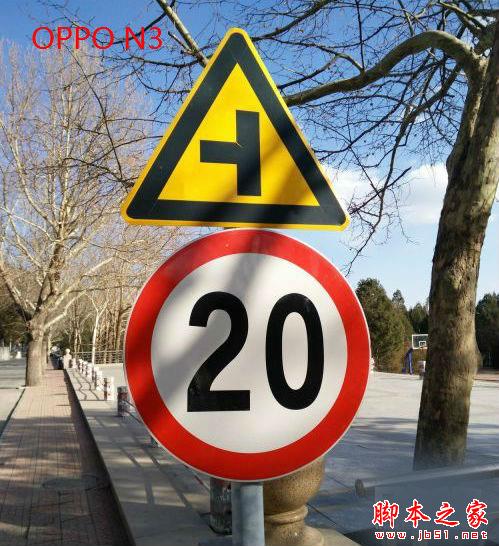 还是同一个场景,不过焦点聚集在了路牌上,这次差别就非常明显了,Mate7依然有不错的表现,色彩真实整体感觉很通透;OPPO N3整体赶紧明亮对比度高,调校的很有特色;Xplay3S虽然是一款比较早的手机,整体来说还可以,只不过聚焦范围之外表现欠佳;MX4 Pro虽然锐度很高,但是好像蒙上了一层灰色,应该是自动调校的问题。
