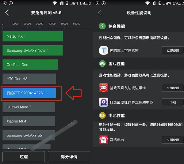 通过安兔兔V5.6跑分测试,中兴天机3安兔兔跑分成绩如下图所示: