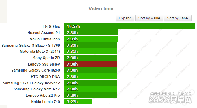 播放视频:联想S90可播放7个半小时视频,表现与其他同级别机型差不多,比如华为Ascend P1、Moto X以及HTC Droid DNA等。