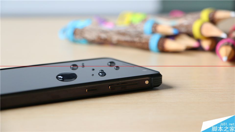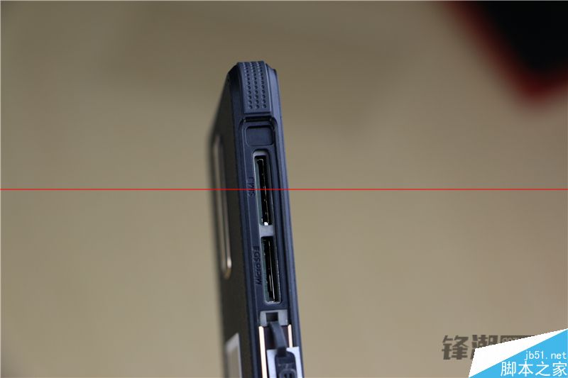 SIM卡槽和Micro SD卡槽放置在机身左上方,严密的拉拔式金属条设计使其拥有IP54防水等级。
