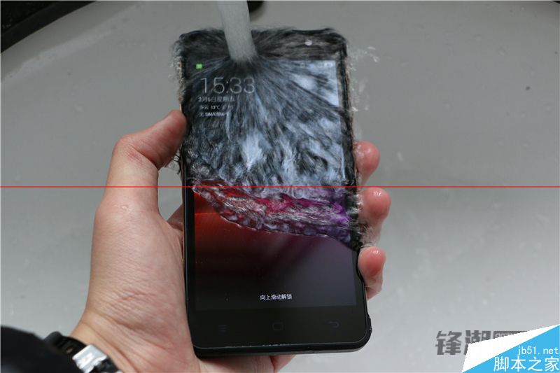 海信G610M的防水级别为IP54,从上图的防水测试能看出,在水的冲击下并未有任何影响,并且还是照常运行。