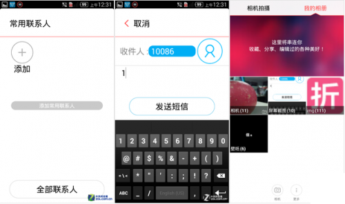 短信、拍照、联系人界面