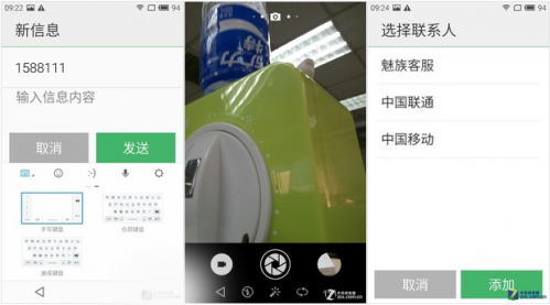 在短信界面中,其字体处理方式与中兴相似,并没有追求更大字体,字体较为适中。而在拍照界面同样未做特除改变,较大的按钮对于老年用户也较为同样操作。总体来看,魅蓝(口碑、购买)易用模式通过字体、图标、颜色等方式进行区分其功能,在细节方面可谓是较为出色,不仅从视觉清晰分辩,操作也更为容易上手。