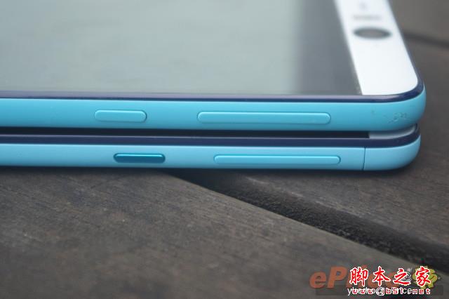 ▲Desire 826 白杏色款采用了类似 iPhone 5c 的亮面塑料,比较容易沾染油污跟指纹;蓝色款采用磨砂机背,手感较好。