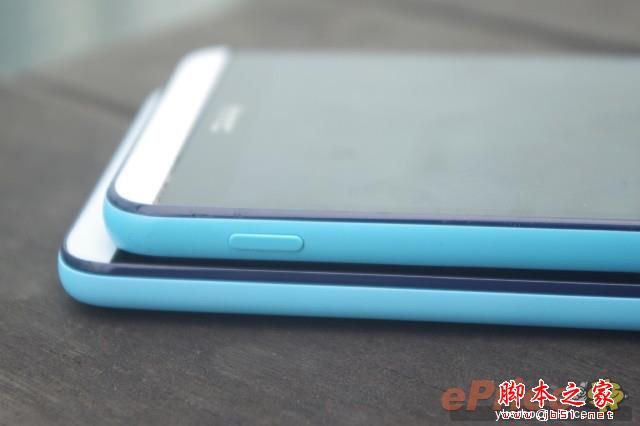 ▲蓝色版 Desire 826 边框采用了防护塑胶,可以有效防止手滑跌落。