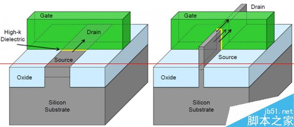 7420处理器最大亮点在于使用了三星自己的14nm FinFET工艺制作,该工艺是目前手机处理器上最先进的之一——台积电的16nm工艺尚未实现量产,而7420的竞争对手Snapdragon 810处理器使用的还是20nm工艺,从制程工艺的数值上面来说,自然是越小越好,因为晶体管之间的距离越小,那么相对来说能耗就更低,性能就更强,但若是晶体管之间距离太小则会导致芯片不同部分之间发生漏电流(Leakage)现象,而FinFET工艺为了解决该问题,会在两个传导通道之间加入一层很薄的硅“鳍”。