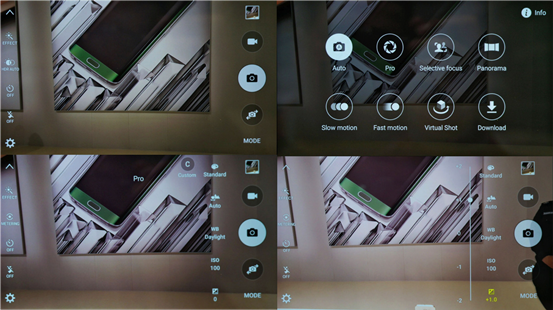 不仅如此,在功能性方面Galaxy S6 Edge还新增了Virtual Shot(虚拟拍照模式),借助于加速度计和相机的协同工作,用户现在能够以一个物体为中心拍摄不同角度的照片并直接合成为一张多角度照片,而且虚拟拍照模式还支持前置摄像头。另外,有需要的用户还可手动自行下载Sound Shot与Sports Shot模式。