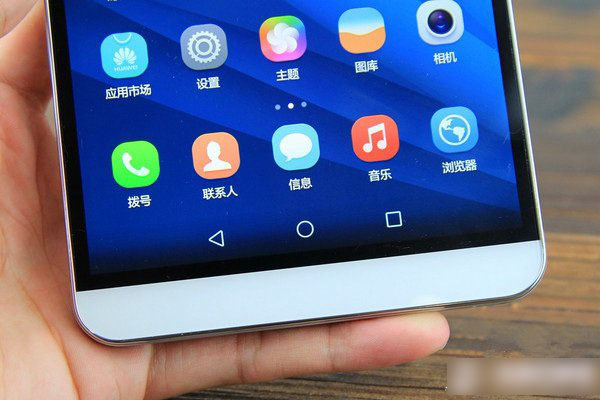 显然,荣耀X2屏幕边框并不窄,但是手机的上下部位继承了华为Mate 7的特色,正面观看效果达到了一个视觉效果非常舒适的境界,听筒、摄像头、光线感应器的开孔也非常和谐。