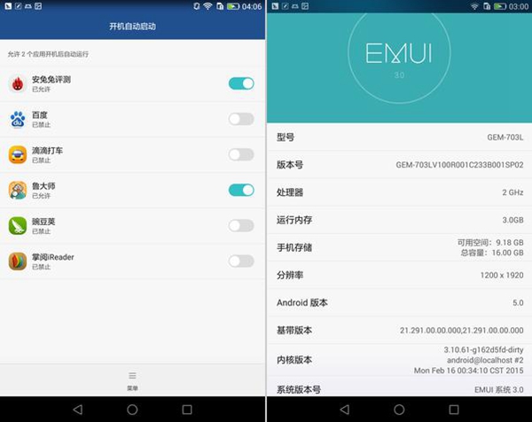 | 系统版本 | Emotion UI 3.0(基于Android 5.0) | Emotion 3.0(基于Android 5.0) |