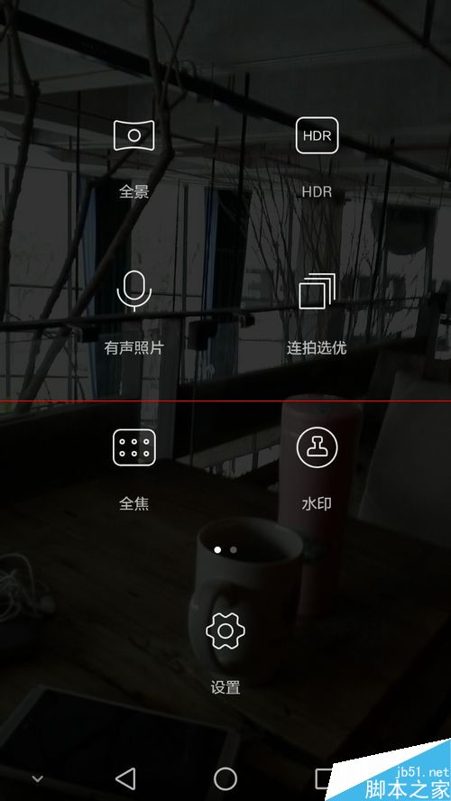 3、进入拍照程序后,点击右上角的菜单选项,选择全景拍照功能,进入后进入全景拍照模式
