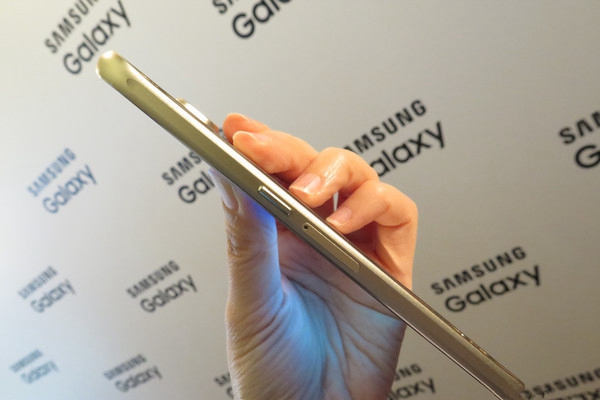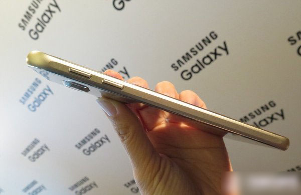 手机左侧设计与之前有所不同,此次S6采用的是类似与梯形的设计,侧面能很好的体现出金属的质感,而中部偏上的位置为两颗独立的音量按键,键程适中,按键反馈明显。