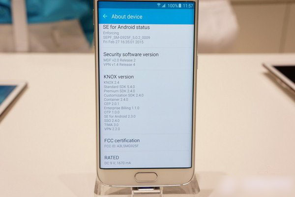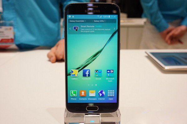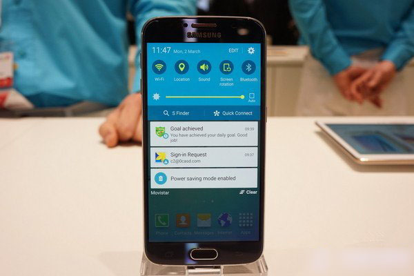 此次三星GALAXY S6采用的是玻璃材质与金属架构,从正面可以看出三星一如既往的设计语言,其正面是采用的是一块5.1英寸2K分辨率的Super AMOLED屏幕,PPI高达557,并且还有大猩猩4代玻璃,整体显示效果出众。