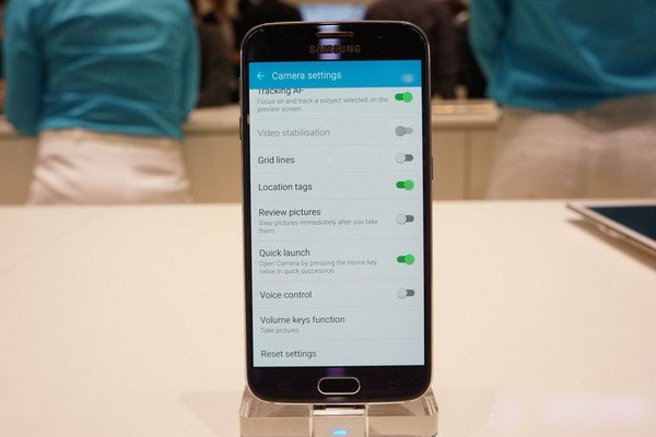 拍照一直是三星比较注重的细节,此次后置摄像头虽然维持在1600万像素不便,但是加入了相机防抖功能,低光拍摄效果更佳,在任何光线环境下(即使在黑暗的环境下),都能打造出最佳的画质效果。此外,实时HDR、智能OIS以及红外检测白平衡功能,为用户提供了先进的光敏度和清晰的拍照解决方案。“快速启动”(Quick Launch)功能可让用户在0.7秒内从任一屏幕迅速直通相机——只需双击home键即可实现。