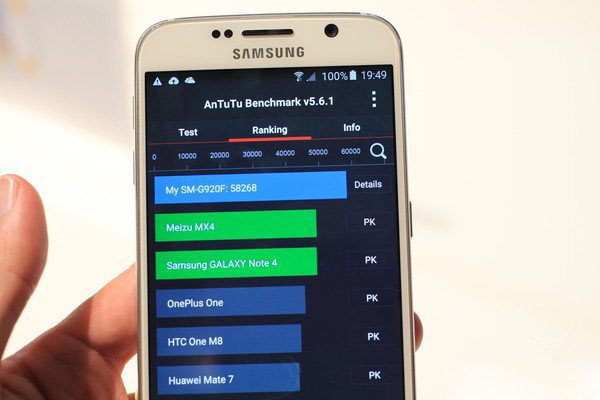 三星GALAXY S6此次配备的是三星自家研发的Exynos 7420处理器,加以3GB LPDDR4内存,整体性能也排在旗舰机的前列,从安兔兔的跑分中也能够看出该款手机的硬件性能。