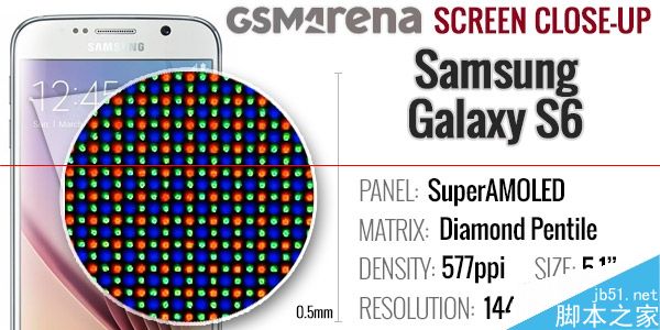 Galaxy S6的屏幕是这台手机上一大亮点之一,将2K的分辨率压缩到5.1英寸,S6获得了惊人的577ppi,是目前市面上屏幕ppi最高的智能手机,尽管屏幕的子像素使用了传统的菱形Pentile排列,但是对于细腻度没有任何影响。
