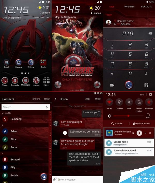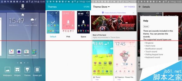 S6上面完善的主题功能同样也是S5所不会具备的,S6从出厂就预置了三款主题,并且支持通过应用商店下载,其中还包括复联的主题(毕竟三星是电影的赞助商),更换主题之后,壁纸、图标、通知区以及部分原机APP(拨号盘、联系人、短信)的UI会进行改变。