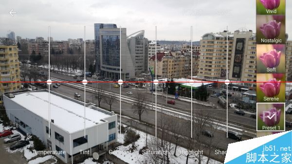在功能性上,S6加入的“Pro”模式可谓噱头十足,其中开放了对焦、曝光补偿、白平衡和ISO供用户自由调整,并且用户可以将目前的设定保存为预设,以便在下次遇到相似场景时快速调整,内置的色彩调整也有着相当丰富的选项,用户可以在保留画面明亮部分细节的同时手动增加画面阴暗部的亮度,其他调整对比度饱和度色温和色彩偏移等等的也都有,并且还能够加入类似于Instagram的相片滤镜。