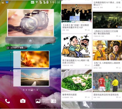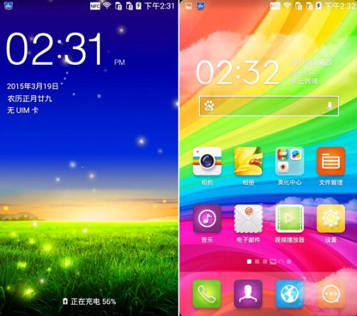 在系统桌面上,增加了音乐、拍照等快捷界面,大家在OPPO的Color OS已经见过了吧,这里就不多介绍了,用起来还是很方便的。还有独有的“辣椒小知”杂志界面,介绍了包括资讯新闻、生活常识、八卦热点等内容。