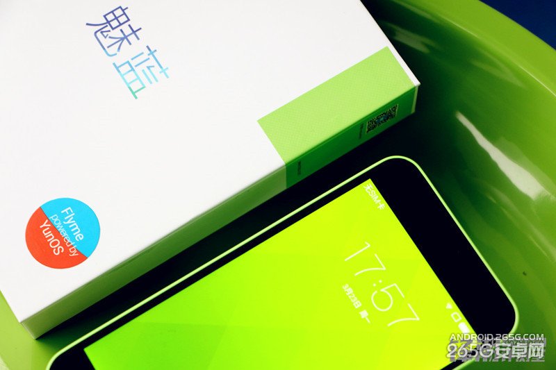 作为一款售价仅为699元的智能手机,魅族给出的包装盒还是十分精致的,与一水的千元机放在一起比较,魅蓝的包装盒尽显小清新。而我手上的这台则是YunOS版本的魅蓝。此前我们安卓中国-锋潮评测室曾经就YunOS版的魅蓝note做个比较深入的点评。