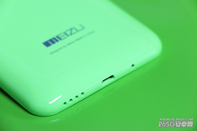 好了,闲话不再多说,我手上的这台魅蓝手机是绿色版本,色泽与iPhone 5c的绿色版本是完全一致的。按照魅族在发布会的时候所描述的那样,魅蓝手机的外壳聚碳酸酯材质,与iPhone 5c的材质是一模一样,从肌肤触感上说,手感与视觉感受应该都是比较接近的。