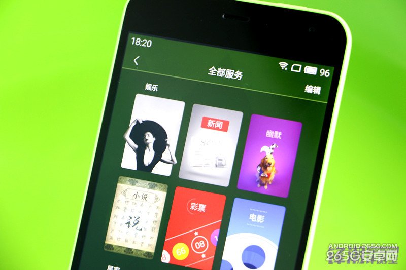 相比较普通版本的魅蓝手机,YunOS系统提供了几乎一模一样的交互体验。比较突出的差异是主页面的最左侧加入了阿里巴巴的多项在线服务,主要以卡片呈现。