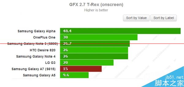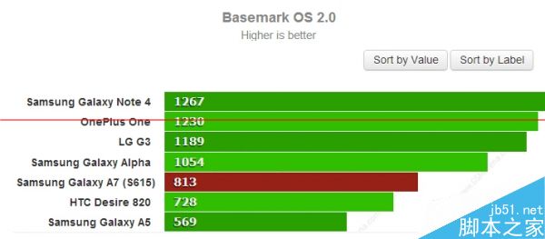 在网页测试中,A7的JavaScript性能让人大跌眼镜,即使三星的原生浏览器有开挂的JS引擎,但分数还是不太理想。