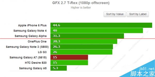 虽然肯定不敌note4,但是BrowserMark 2.1 测试的分数还不错,日常上网还是会很流畅的。总体来说,骁龙615的运算性能还可以,但图形性能就比较渣了。