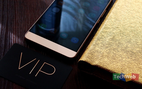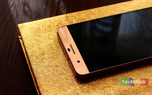 荣耀6 Plus金色高配版机身正面,屏幕采用5.5英寸FHD 1080p显示屏,分辨率1080×1920像素,色彩达到85%的色彩饱和度,亮度达到500尼特,阳光下屏幕的文字可清晰可见,屏占比达到了78.2%,手机屏幕边框采用了包边的设计之后,从视觉来看,荣耀6 Plus金色版的屏幕边框为黑色,与屏幕融为一体,息屏状态下会给人一种无边框的假象,和Mate 7非常相似。屏幕表面覆盖着康宁大猩猩三代玻璃,并且拥有一层抗指纹镀膜,保护手机防刮同时不易沾染指纹,这样的好处比较讨用户喜欢。