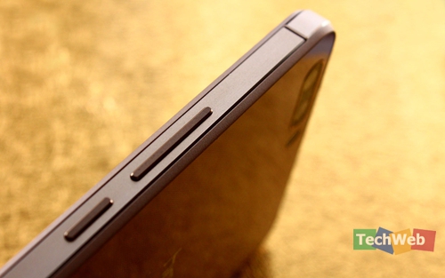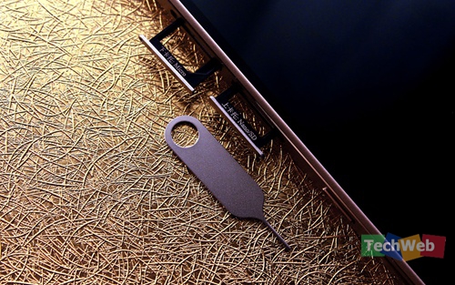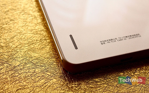 荣耀6 Plus金色高配版侧面由上到下依次顺序为:音量+、-按键,电源键,这两个按键都采用了金属拉丝设计处理,金属装饰条倒角CNC切割加工工艺;下面两个是SIM卡槽,支持双卡双待功能,卡槽1是nanoSIM卡,卡槽2时Micro卡,支持TD-LTE/FDD-LTE/WCDMA/GSM,也就是说支持中国移动中国联通的4G\3G\2G网络,实现双4G网络。特别提示卡槽1与TF卡共用一个卡槽,混插技术,也就是说用户可以自行选择是组成双卡双待还是单卡+存储卡。