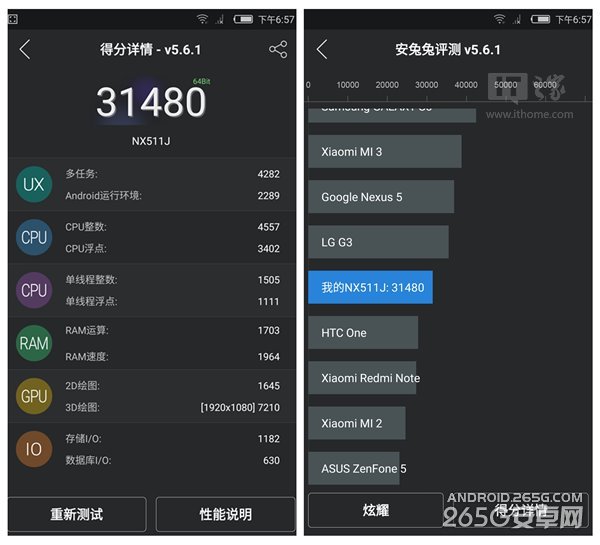 在初步体验中,我们仅使用最新版64位安兔兔对两部新机进行了测试,具体情况如下图所示: